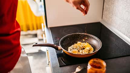 Rührei ist die ideale Proteinmahlzeit zum Frühstück: Damit hast du nicht nur gute Nährwerte, sondern kannst es auch mit verschiedenem Gemüse kombinieren.