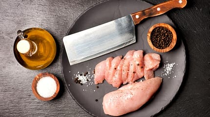 - Zum Verarbeiten verwenden Sie ein gesondertes Schneidebrett (nur keines aus Holz!) und ein separates Fleischmesser.