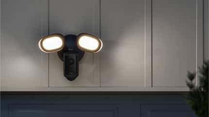 Es werde Licht: Die Ring Floodlight Camera Pro erleuchtet den Sichtbereich mit strahlend hellen LED-Scheinwerfern.
