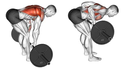 Beanspruchte Muskeln beim Langhantelrudern (Barbell Row).